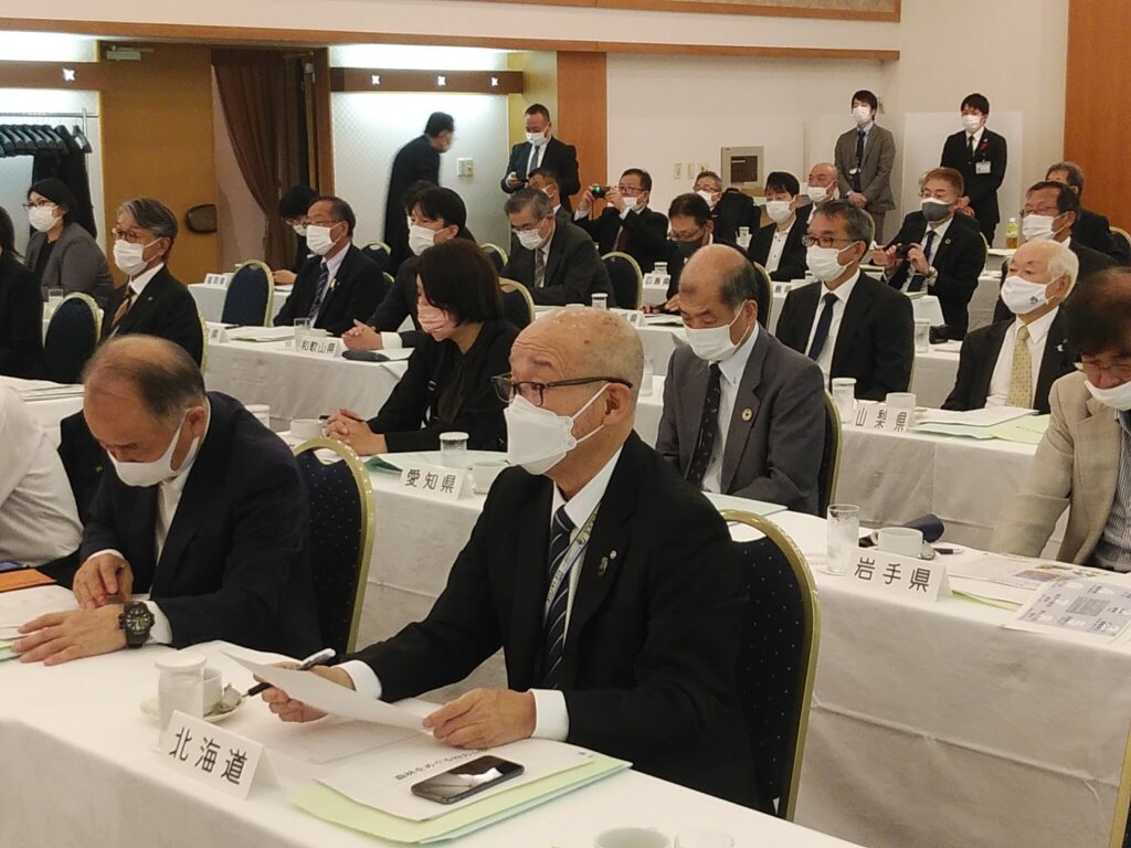 令和4年10月13日から14日、山梨県において、全国治山林道協会長会議が開催されました。13日は、甲府市内のホテルにおいて、室内会議が開催されました。冒頭に前田直登日本治山治水協会顧問の開会あいさつに続き、地元山梨県選出の中谷真一衆議院議員、堀内詔子衆議院議員、永井学参議院議員、保坂武山梨県森林協会会長(甲斐市長)、渡邊和彦山梨県副知事のあいさつがありました。そのあと、石田良行林野庁森林整備部森林整備課長から「森林をめぐる四方山話」と題した講話に続き、輿水達司山梨県立大学客員教授による「生きている山梨の自然と災害 ~富士山と南アルプス~」と題した講演が行われました。